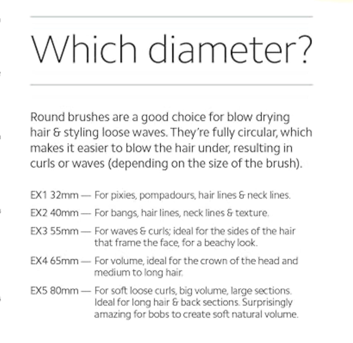 Available in 5 sizes, the EX series is the most innovative design in ergonomics in a round brush EVER! Light weight and easy to maneuver. Extra dense reinforced boar for the practitioner of high performance styling.