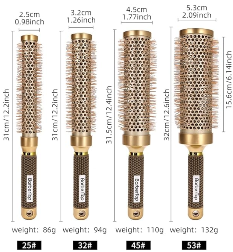 - Precision Styling for Bangs and Layers The slim 25mm barrel (exclusive to this set) is engineered as the ultimate round brush for bangs. Its extended reach effortlessly styles hard-to-reach areas like nape hair or baby layers, creating feathery textures with salon-level control.