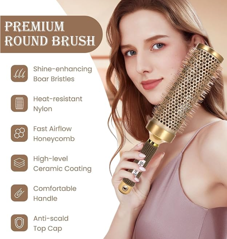 - Ceramic & Ionic Technology for Faster, Healthier Drying】 Our ceramic round brush for blow drying features nano-ionic barrels that reduce drying time by 50% while sealing cuticles. Negative ions eliminate frizz and boost shine, protecting hair from heat damage up to 450°F – perfect for daily styling.