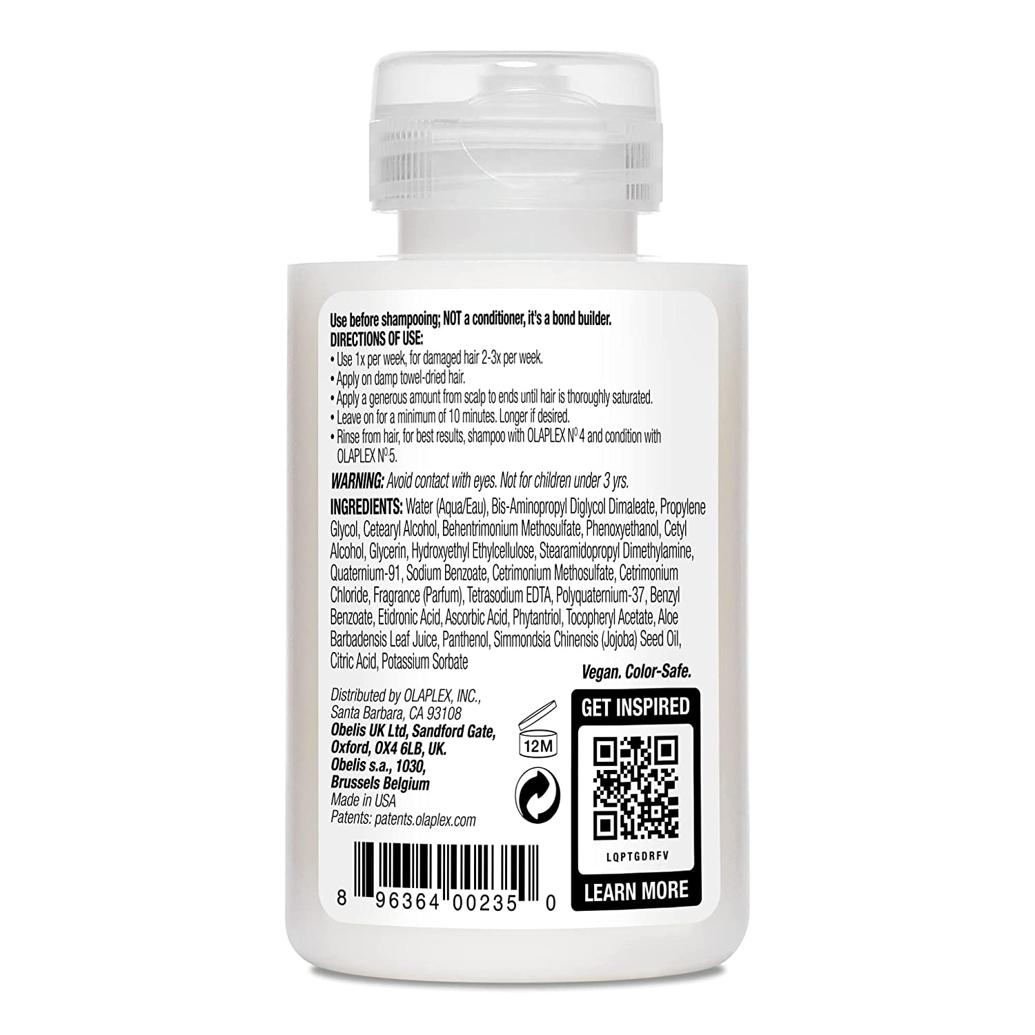 3. For best results, cleanse with OLAPLEX Nº.4 BOND MAINTENANCE SHAMPOO and OLAPLEX Nº.5 BOND MAINTENANCE CONDITIONER