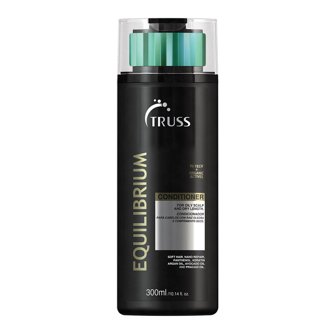 Achieving equilibrium is easy with Truss! Truss Equilibrium is perfect for combination hair, with an oily scalp and dry length. It hydrates and restores hair, protecting against dryness and brittleness. Keep stair light and soft, and is a great daily-use conditioner.