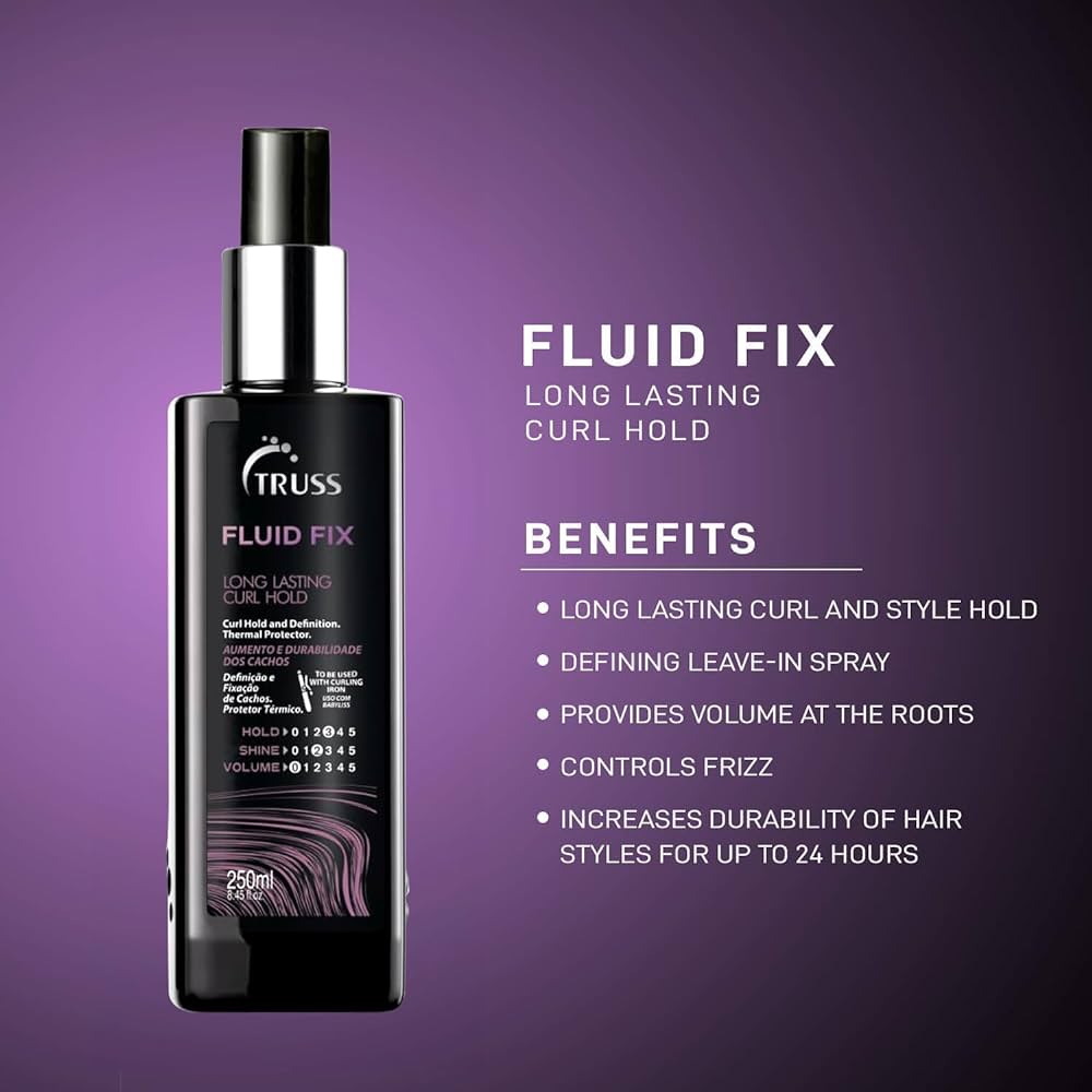 This leave-in spray is great for curl definition and thermal protection. Its volumizing properties, frizz control, and up to 24-hour style hold help create long-lasting looks. Fast-drying and formulated with active ingredients that have a natural affinity with hair, Fluid Fix promotes the recovery of hair's original structure. Applied with a curling iron, it's an ideal styling choice.